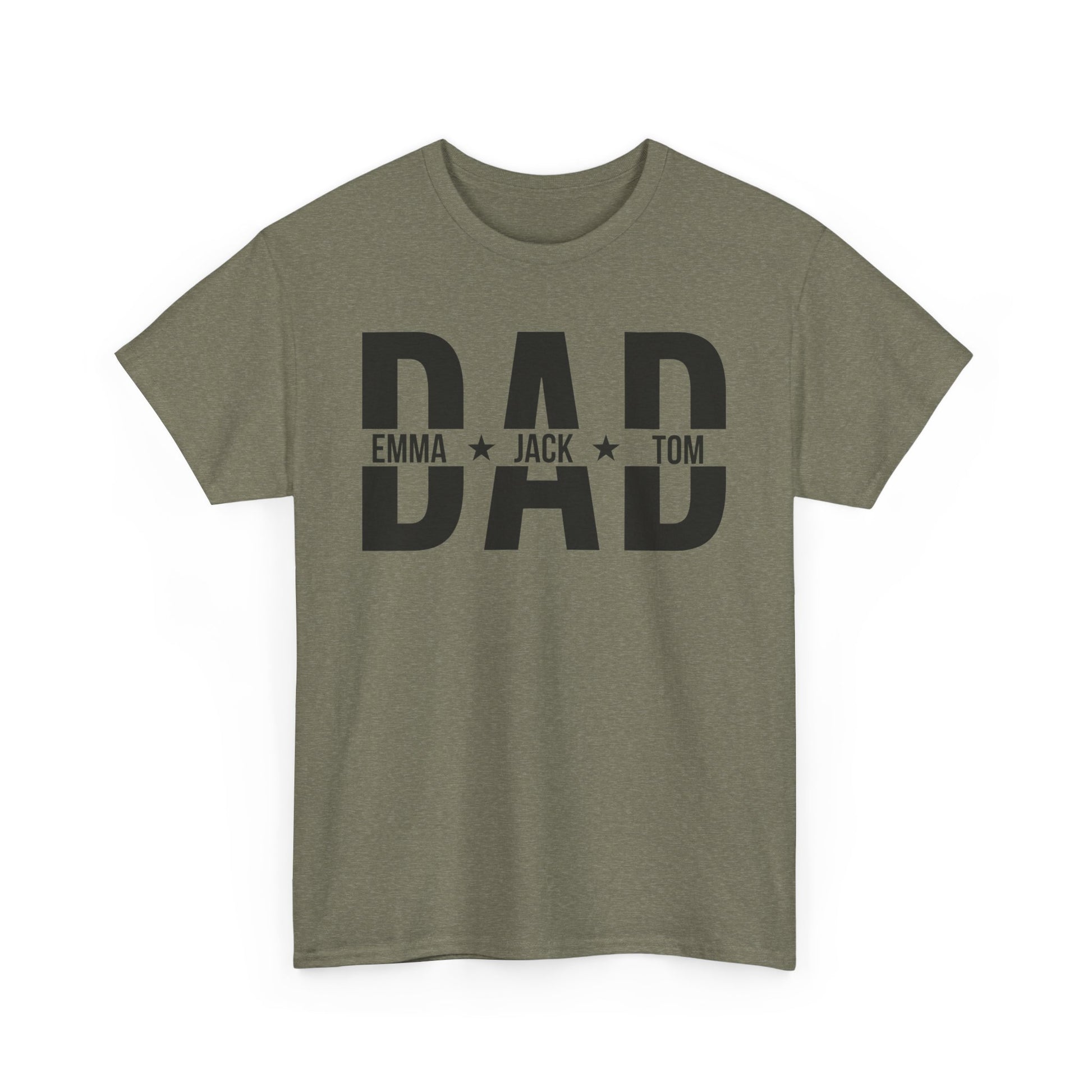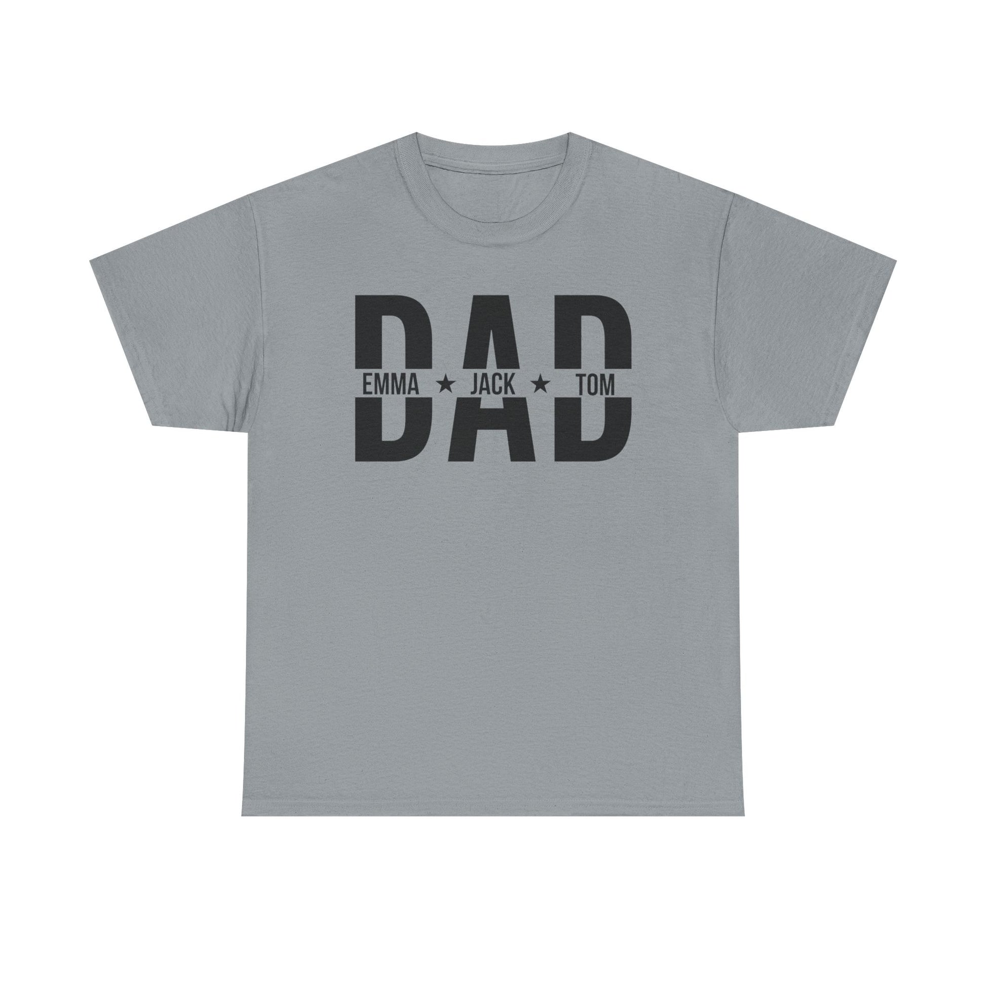 Dad Personalized Heavy Cotton Tee, Custom Father's Day Gift, Unisex T-Shirt, Family Names Apparel, Dad's Day Celebration